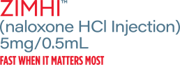 ZIMHI™ is an opioid antagonist indicated for the emergency treatment of known or suspected opioid overdose, including fentanyl poisoning, as manifested by respiratory and/or central nervous system depression in adult and pediatric patients. ZIMHI™ is intended for immediate administration as emergency therapy in settings where opioids may be present. ZIMHI™ offers the highest dose of naloxone available as an intramuscular injection (5 mg/0.5 mL naloxone hydrochloride solution), and is packaged in a single-dose, pre-filled syringe. It is available by prescription.